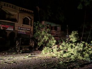 आज सुबह है करीब 9:00 बजे से ही बिजली विभाग और नगर पालिका का पूरा हमला घटना स्थल पर पहुंचा और गिरे हुवे पेड़ काटने की कार्रवाई शुरू हुई लेकिन यह कार्रवाई भी लगभग 2:00 बजे तक चलेगी और 2:00 बजे के पहले विद्युत सप्लाई चालू नहीं हो पाएगी काफी बड़ी नुकसानी हुई और उसे रिपेयर करना पड़ेगा इसको लेकर नागरिकों के अंदर भी काफी आक्रोश है कि बिजली विभाग के द्वारा बिजली सप्लाई के अंदर काफी देर की जा रही है बिजली विभाग के अपने जवाब हैं और जनता की अपनी मांग है विद्युत सप्लाई बंद होने से आम जनता परेशान है