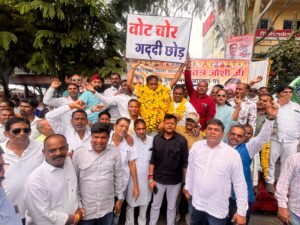 मांडू/वोट चोर गद्दी छोड़ वोट अधिकार जन जागरण यात्रा वाहन रैली के रूप में नारेबाजी करते हुए यात्रा नालछा ब्लॉक होते हुए मांडू पहुंची। जहां सैकड़ो कार्यकर्ताओं ने जगह-जगह मंच बनाकर जिला कांग्रेस अध्यक्ष का जमकर स्वागत किया। इस दौरान बड़ी संख्या में कांग्रेस के कार्यकर्ता मौजूद रहे।