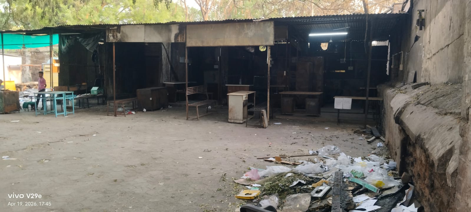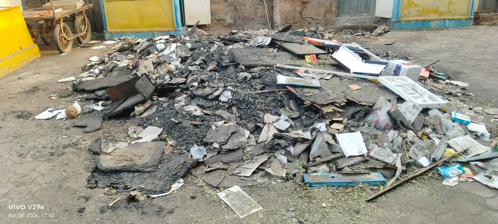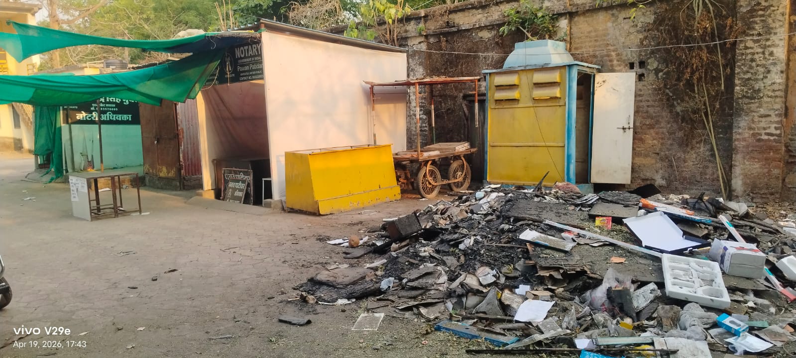 तहसील कार्यालय में दुकानों के जलें कचरें से दूसरी दुकानदारों को आग का खतरा